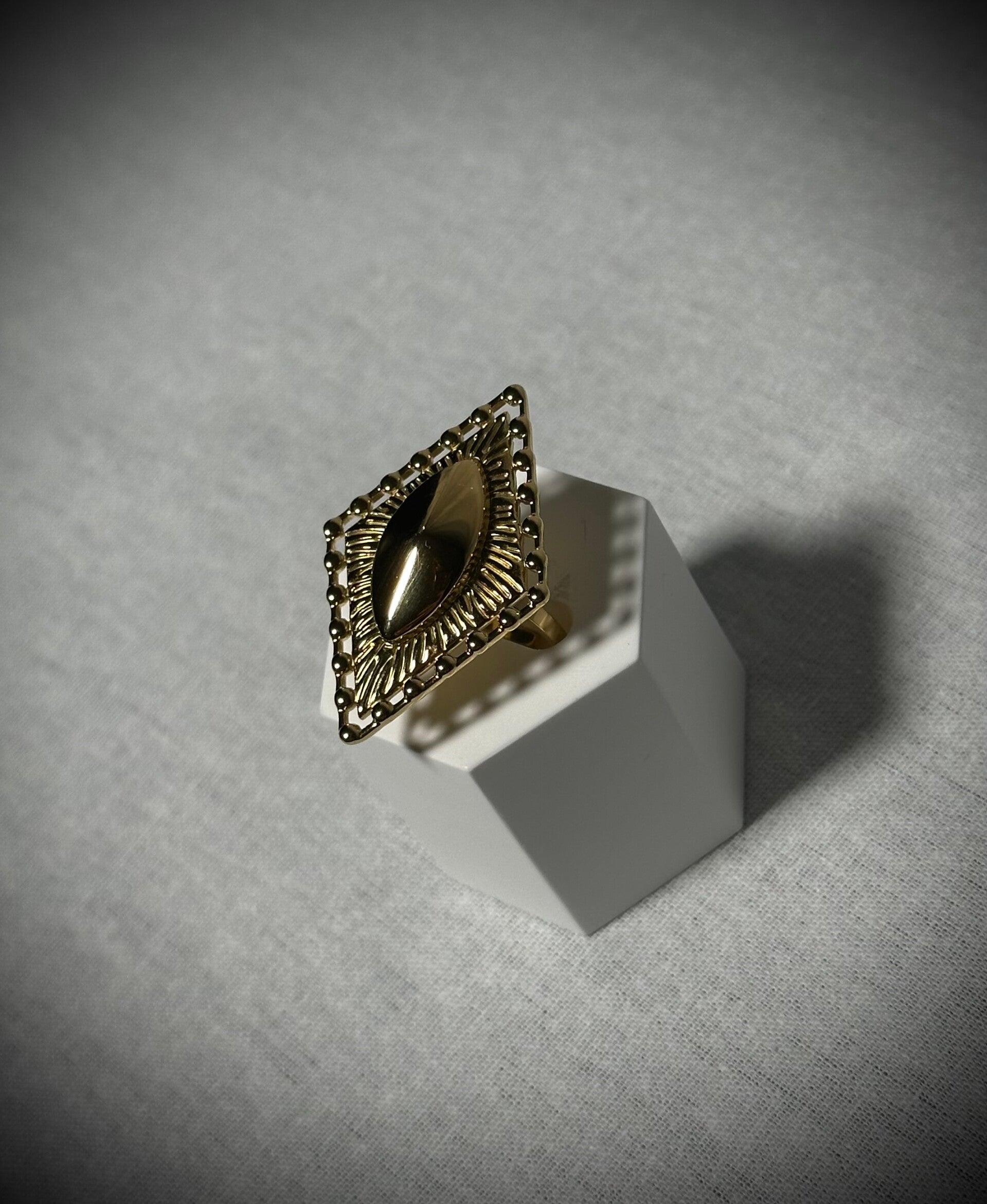 Deze vintage ruitvormige ring is te leuk om niet te hebben. De ring is verstelbaar in maat.