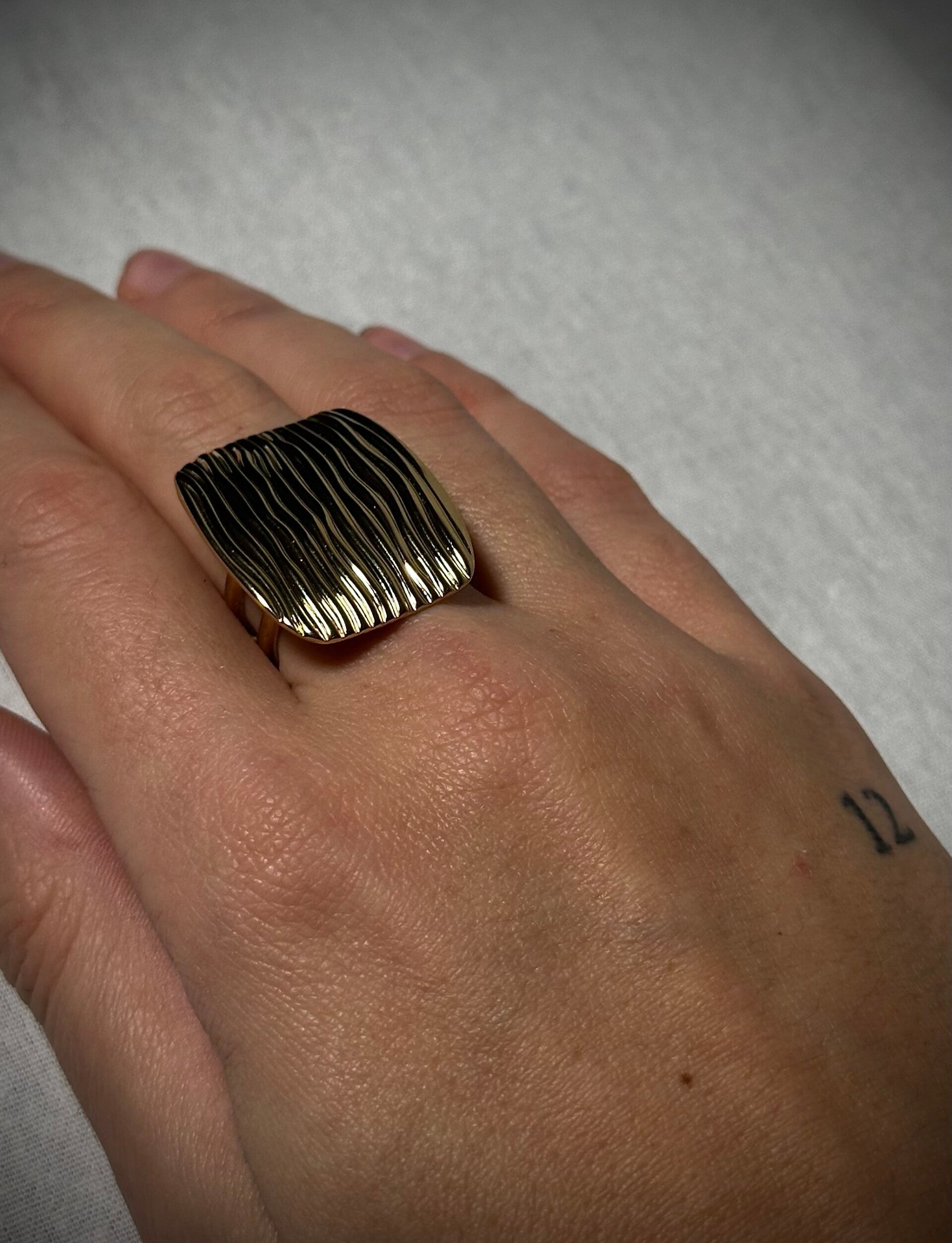 Deze ribbelachtige ring is een te gekke ring die wat groter is dan de gemiddelde ring en dus mooi opvalt.