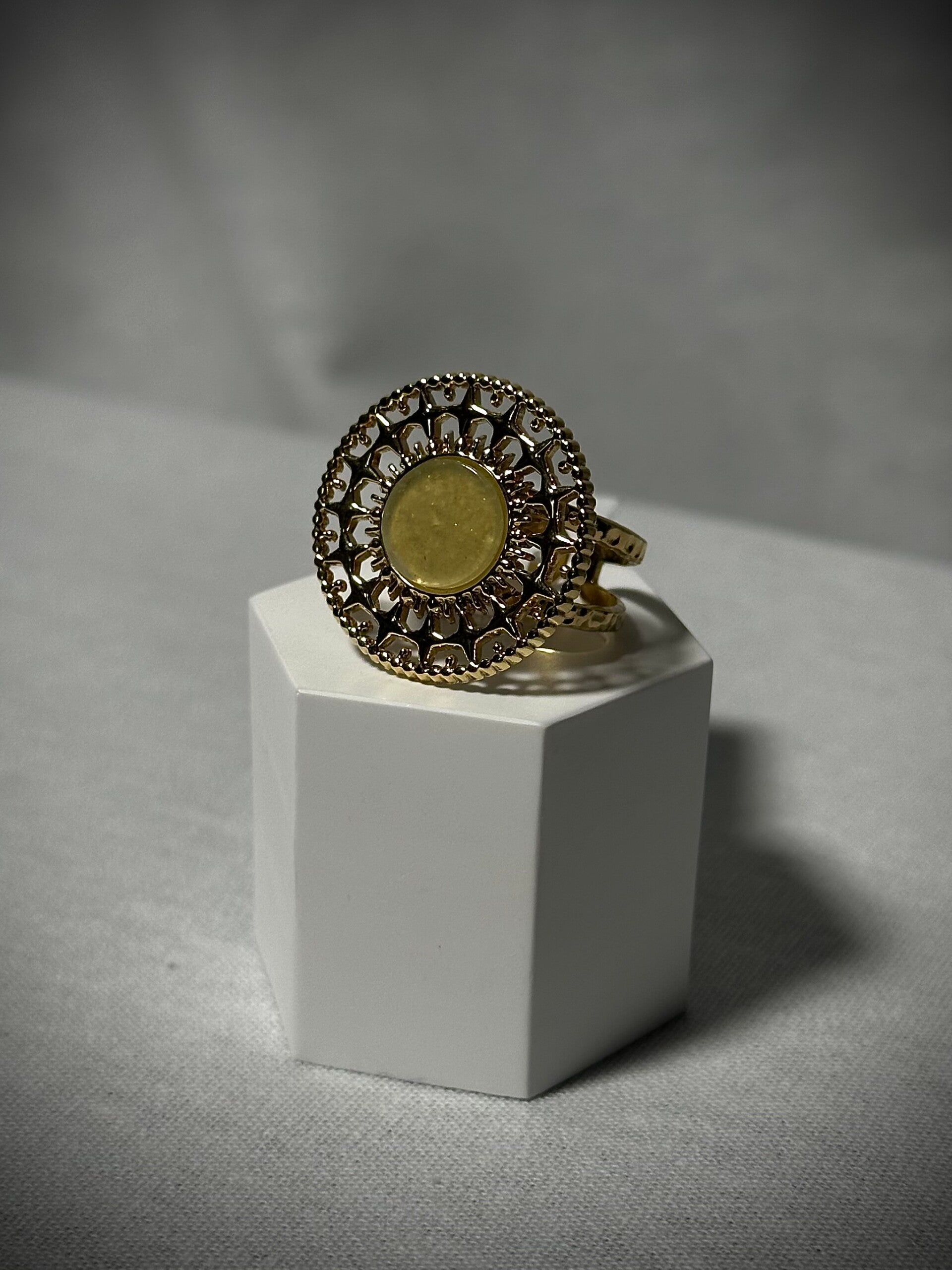 Deze te gekke ring met gele steen is in maat verstelbaar en ook beschikbaar met een groene steen.Al onze sieraden zijn gemaakt van RVS, dus verkleuren niet!
