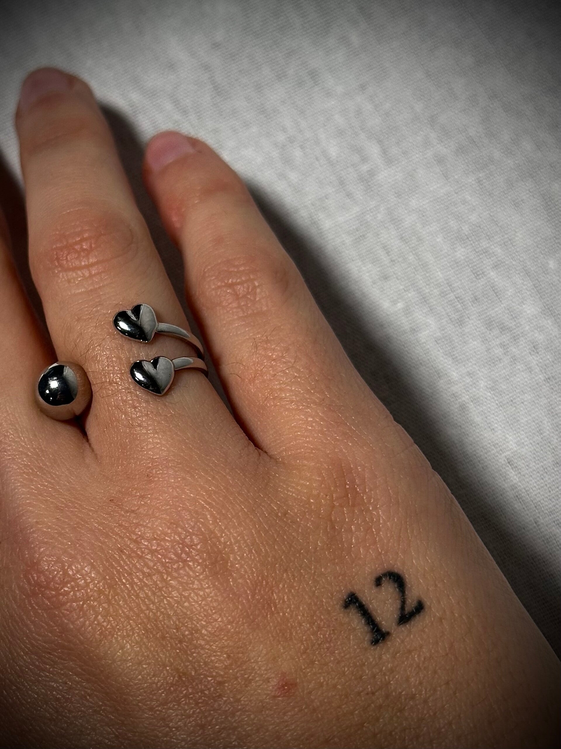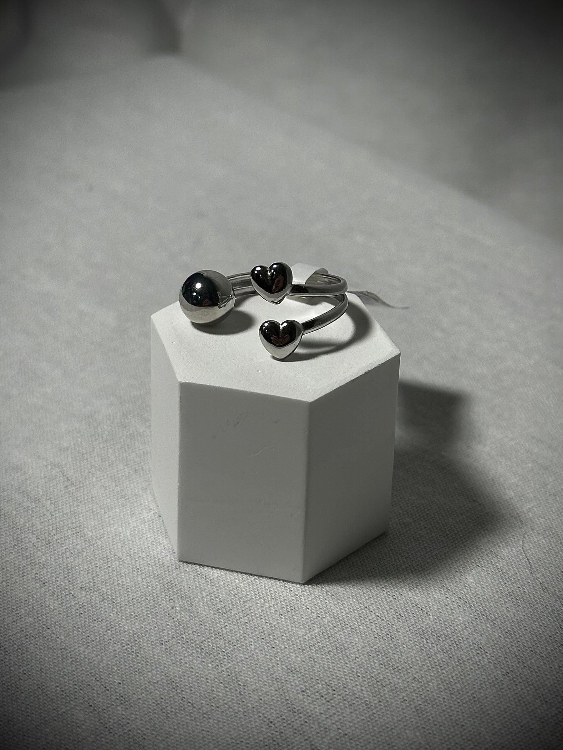 Deze te gekke ring met hartjes en een bolletje is in maat verstelbaar en is ook in het goud beschikbaar.