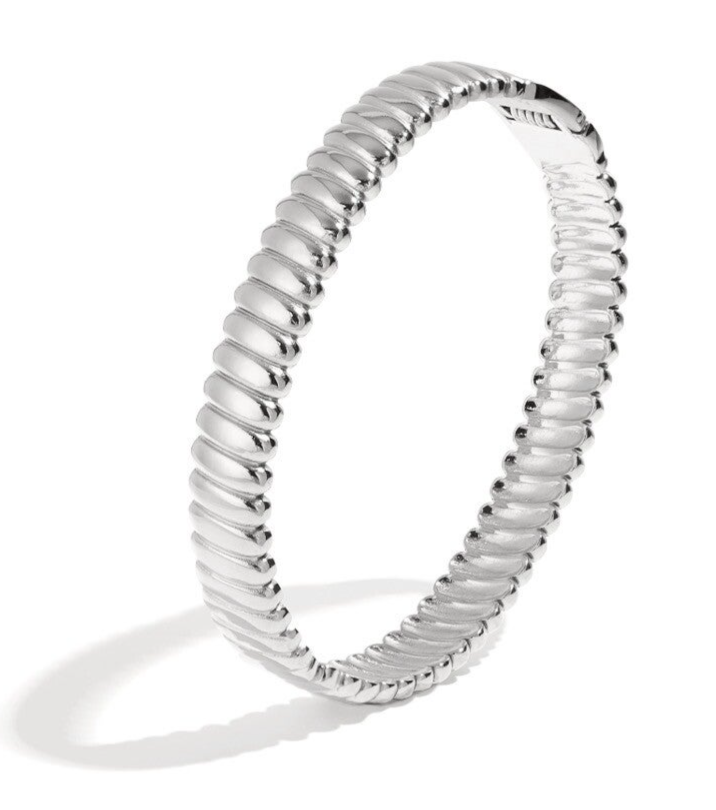 Deze prachtige gouden armband doe je om door middel van de armband open te trekken. Deze sluit vanzelf weer.