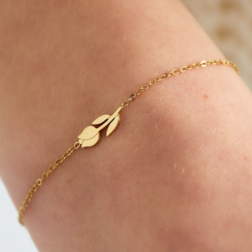Deze schattige tulp armbandjes zijn subtiel en goed te combineren. De armbanden zijn 16 tot en met 19 cm en zijn er in het goud en zilver.